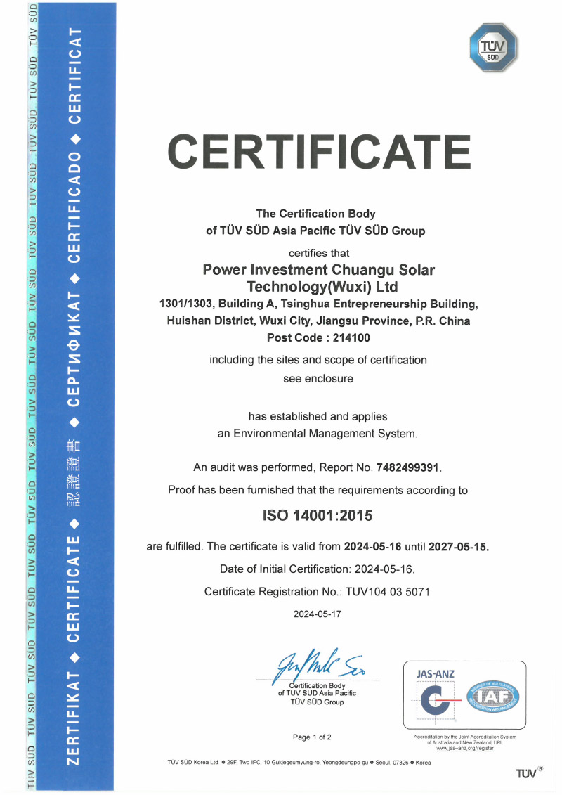 2024年3月18日-19日,源自德国的ISO评审机构TUV南德对电投传古的ISO9001:2015质量管理体系、ISO14001:2015环境管理体系、ISO45001:2018职业健康安全管理体系进行了一阶段审核工作,并又分别于4月15日-18日和4月24日-26日,对电投传古无锡总部和福建诏安基地进行二阶段审核。